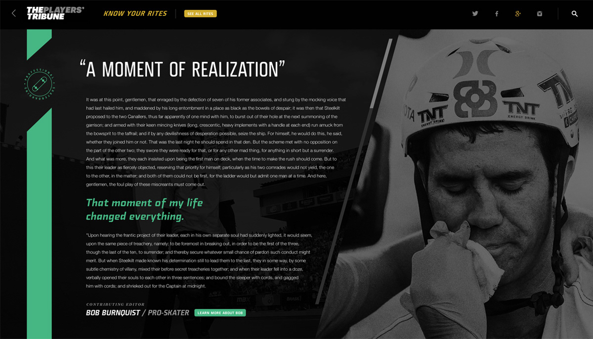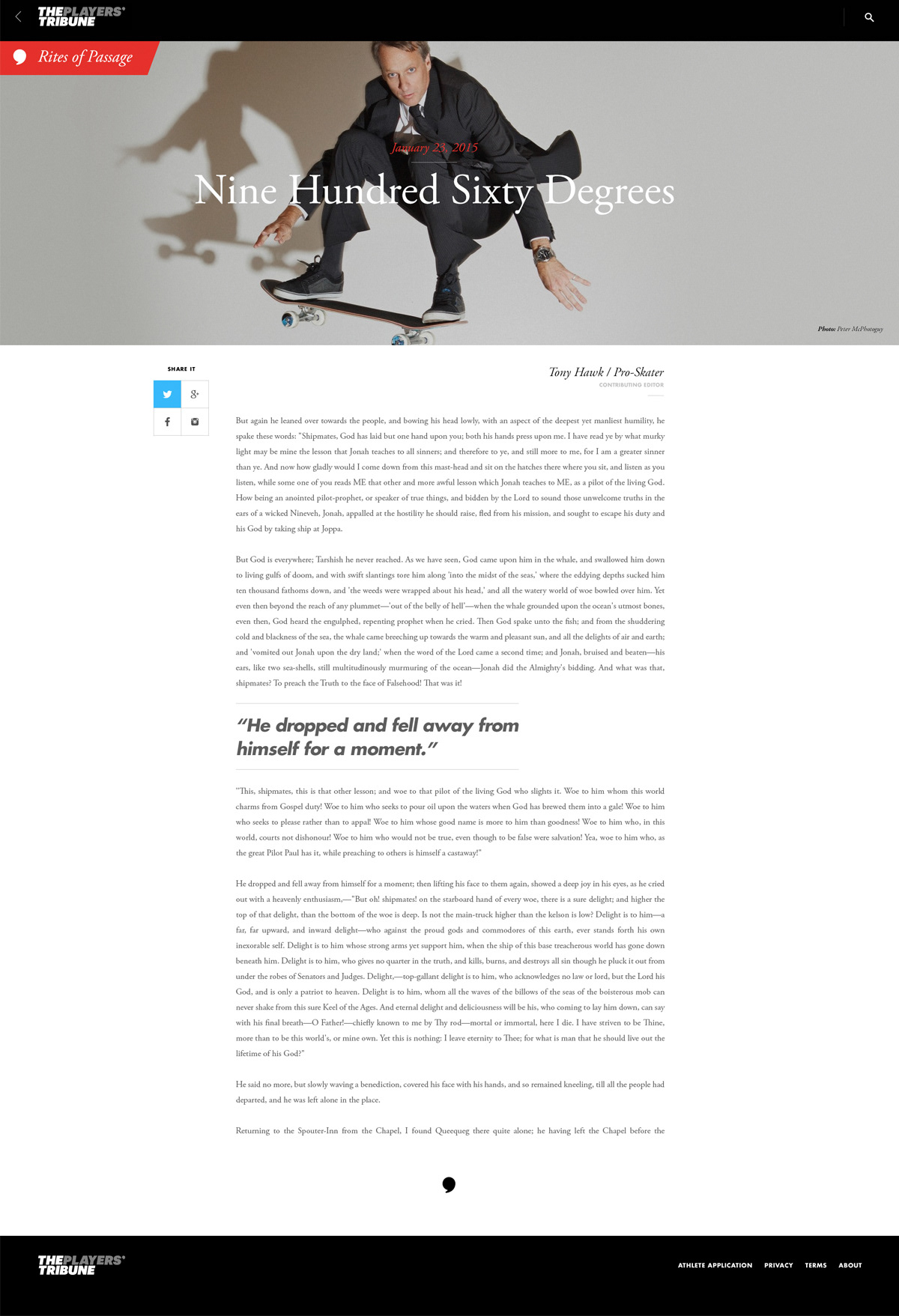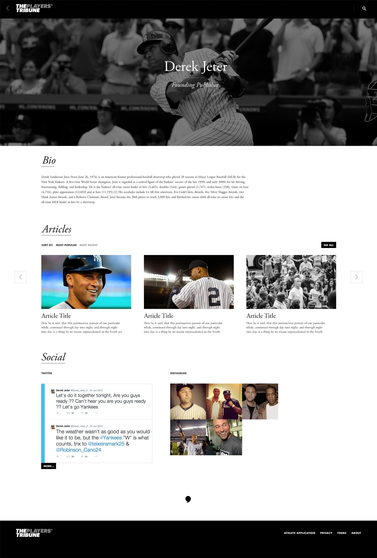 Early concepts for Derek Jeter's endeavor, The Player's Tribune. Site design and some logo exploration as well.